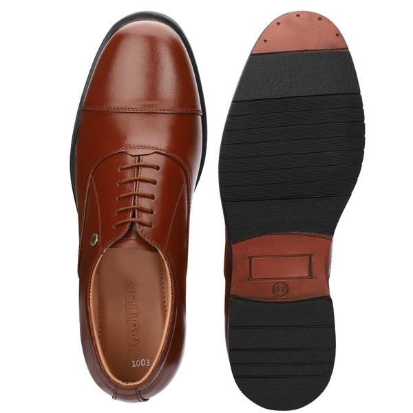 HAUTTON New Premium Formal Leather Derby Shoes for Men (Dark TAN Brown)